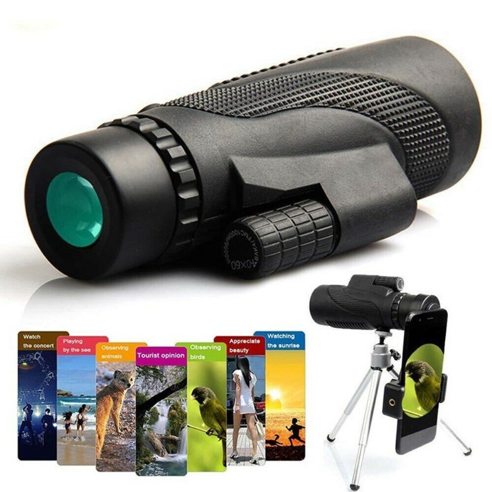 10 цен на Портативный монокулярный телескоп с объективом ночного видения 40X60 HD с зажимом для телефона и штативом