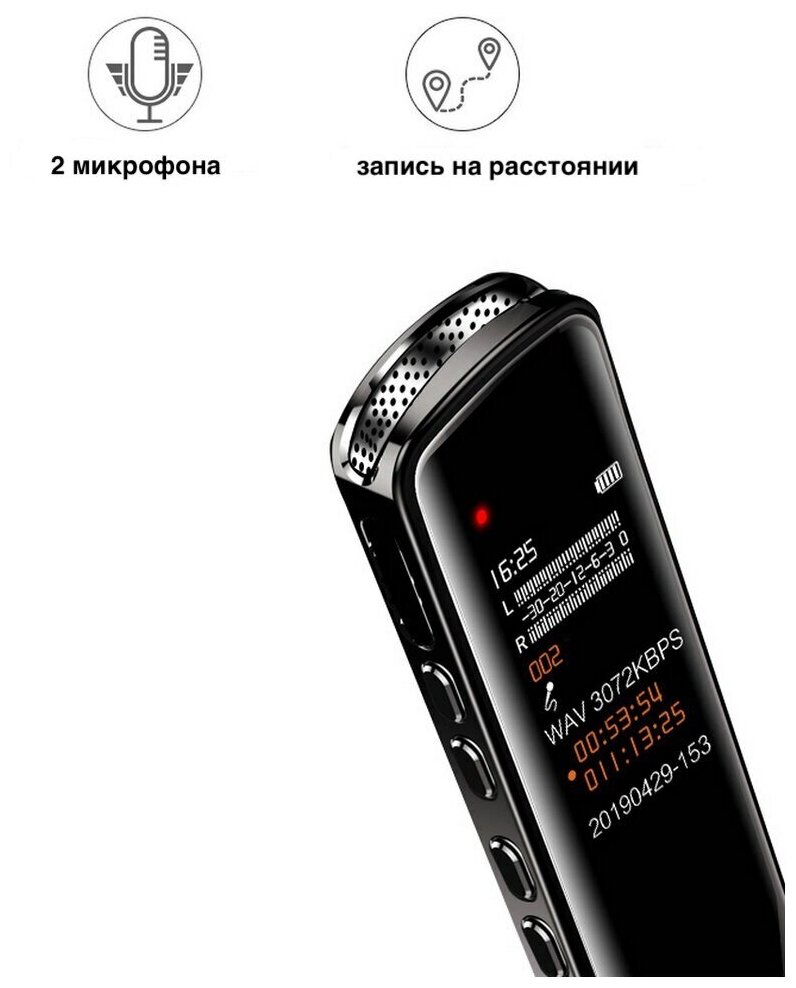 Диктофон Alisten 8GB с дисплеем и датчиком звука, запись до 12 ч/ диктофон с крепление на одежду