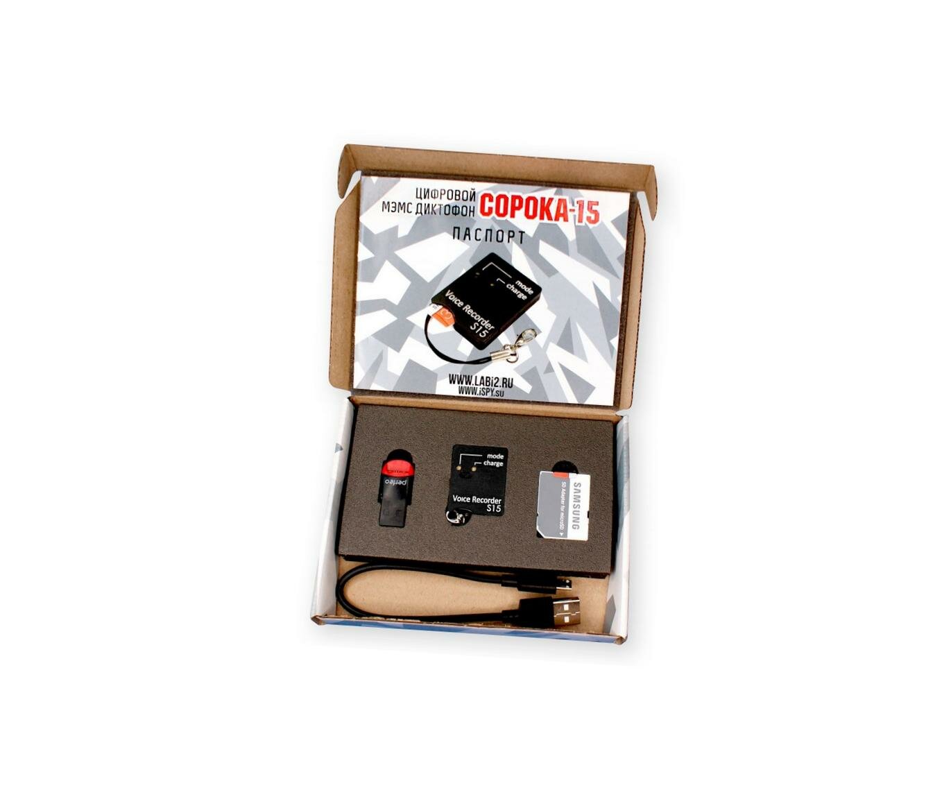 Диктофон с функцией VOX с активацией голосом Сорока 15.3 (MicroSD) (N6930EU) + подарки (SD карта 32ГБ и Powerbank 10000 mAh) (VOX, циклическая запис информация: