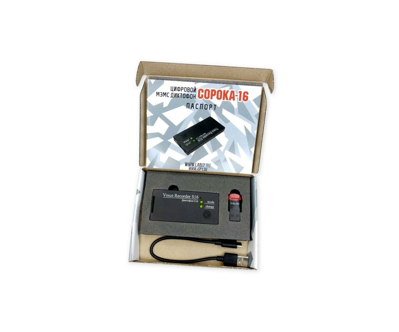 Мини диктофон для записи разговоров Сорока 16.1 (VOX) (N6948EU) + подарки (SD карта 32ГБ и Powerbank 10000 mAh) (VOX, циклическая запись, карта 32Гб информация:
