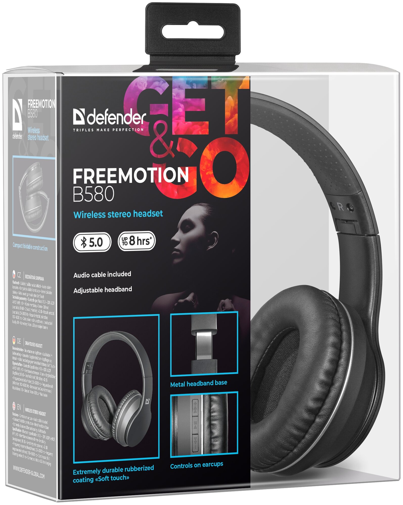 Bluetooth наушники с микрофоном Defender B580 FreeMotion, беспроводная полноразмерная гарнитура,чёрная информация: