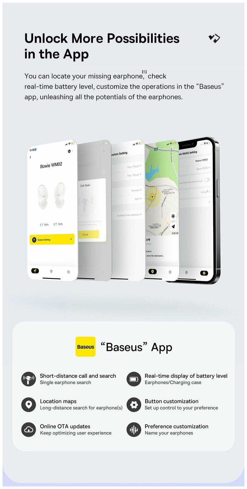 Наушники беспроводные Baseus NGTW18002, Bowie WM02 True Wireless Headphone, белый 1 726 ₽