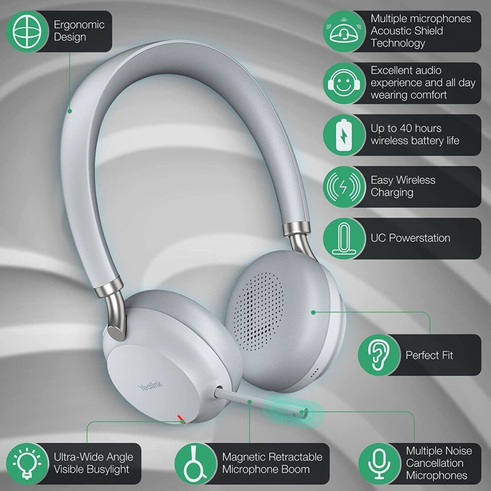 Гарнитура беспроводная Yealink BH72 UC Light Gray USB-A, BT,Заряд.Qi, Серая