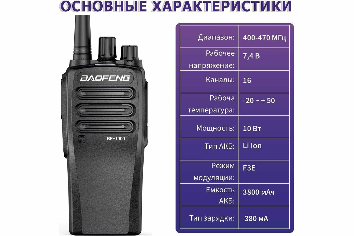 Baofeng Комплект 2 шт. Рация BF-1909 /3800 мАч ( 400-470) МГц 00029148 информация:
