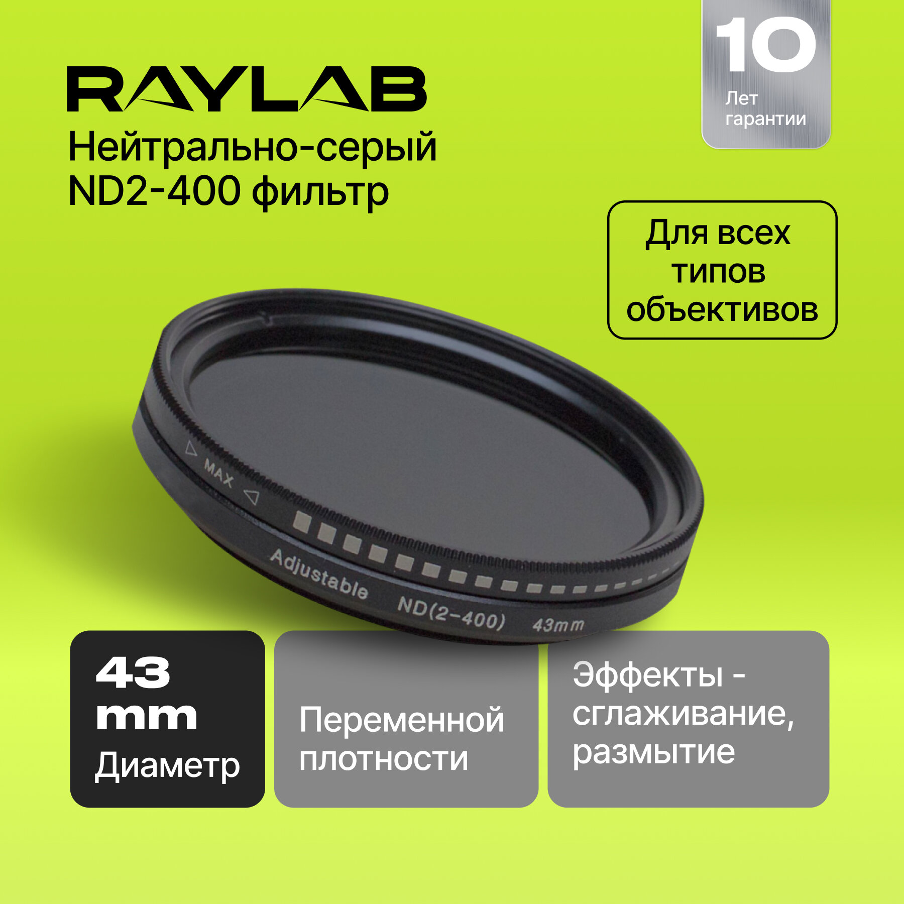 10 цен на Фильтр нейтральный RayLab ND2-400 43mm