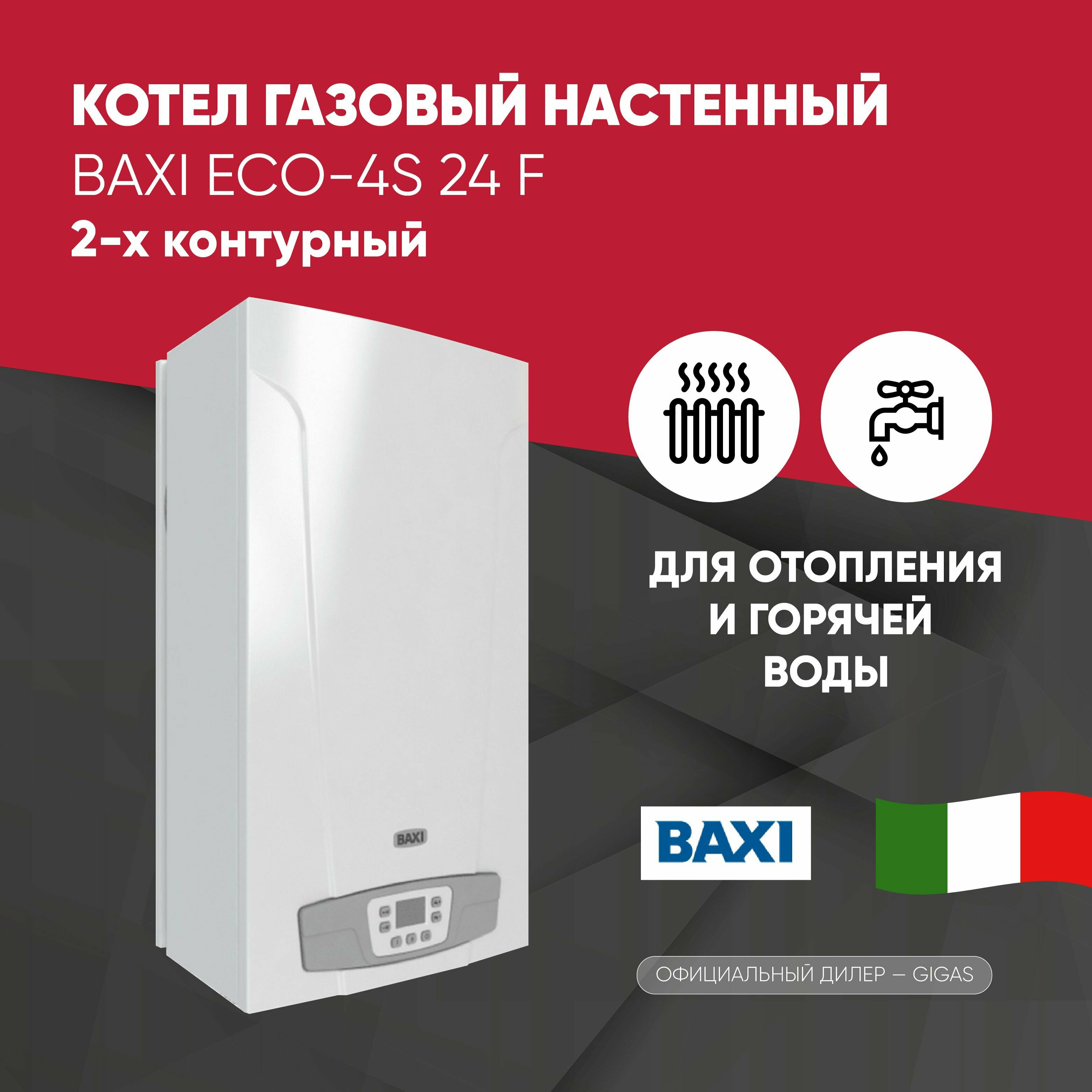 Котел газовый настенный BAXI ECO-4S 24 F газовый 2х-контурный TURBO / до 240 кв.м информация: