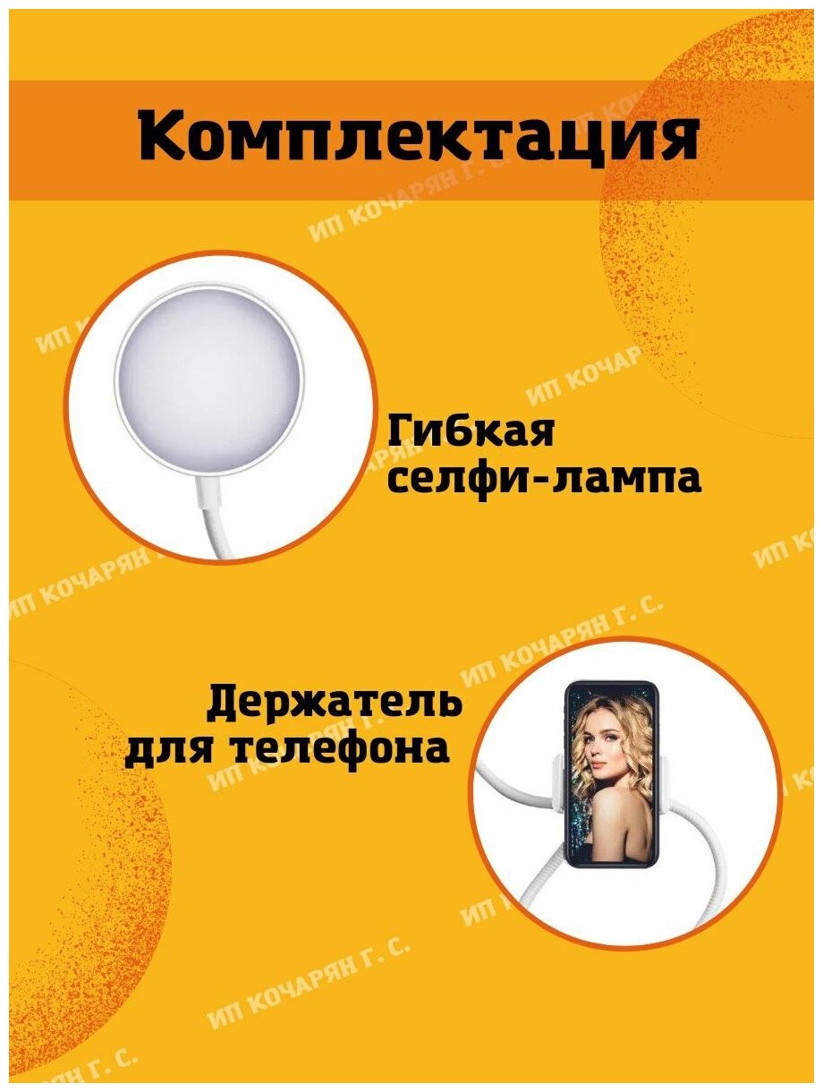 Селфи кольцо с гибким держателем SL-09, белая информация: