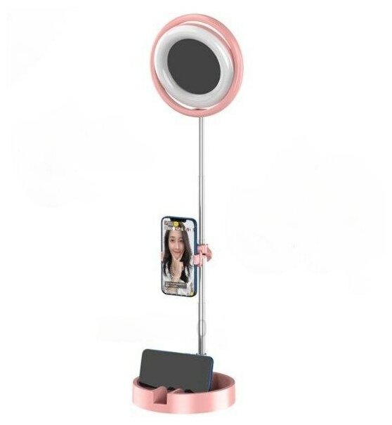 10 цен на Световое кольцо с поворотным зеркалом и подставкой на штативе, розовое
