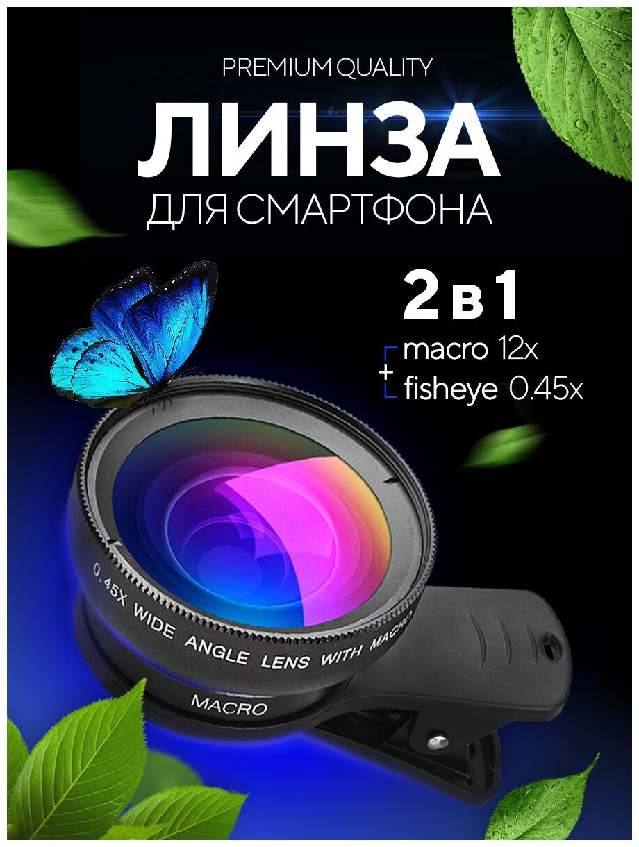 10 цен на Макролинза для телефона (макро линза 12х)+ Широкоугольная линза для камеры телефона ( Фишай 0,45x)