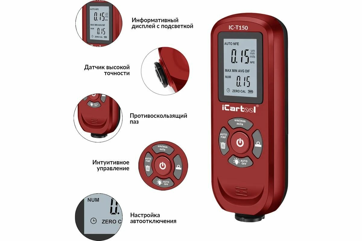 Толщиномер лакокрасочных покрытий Fe/NFe iCartool IC-T150 информация: