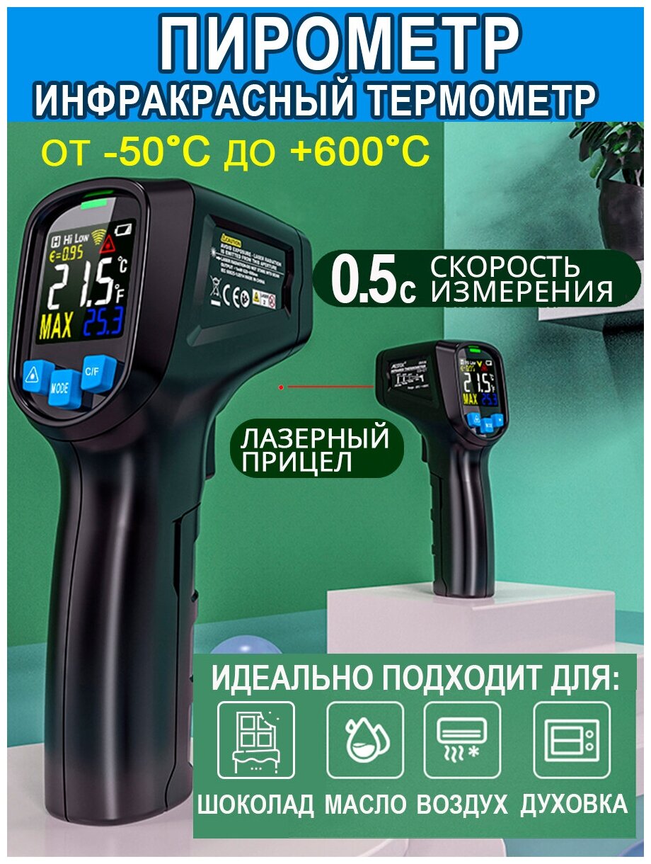 Пирометр инфракрасный 600С / бесконтактный термометр кондитерский / кулинарный пирометр информация:
