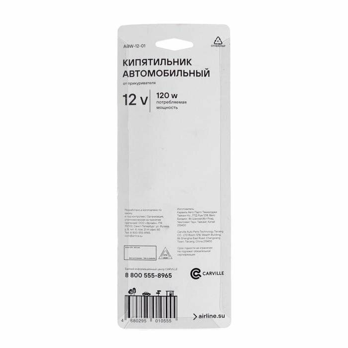 Кипятильник автомобильный Airline, от прикуривателя, 12 В, 120 ВТ информация: