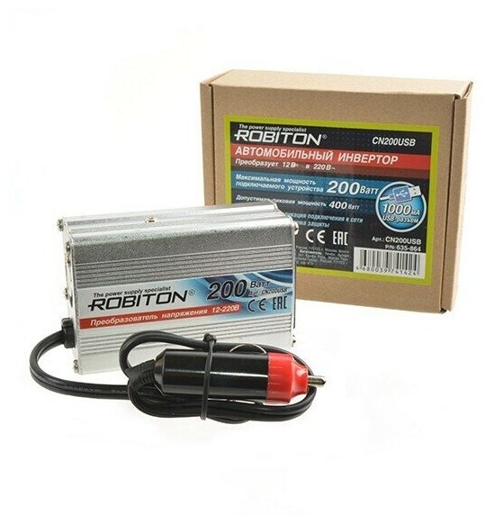 Автоинвертор Robiton CN200USB (200Вт) с 12В на 220В 17503 информация: