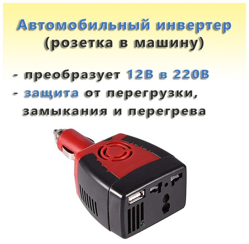 | Дополнительная информация | преобразует 12V в 220V, защита от перегрузки и замыкания, есть USB разъём |