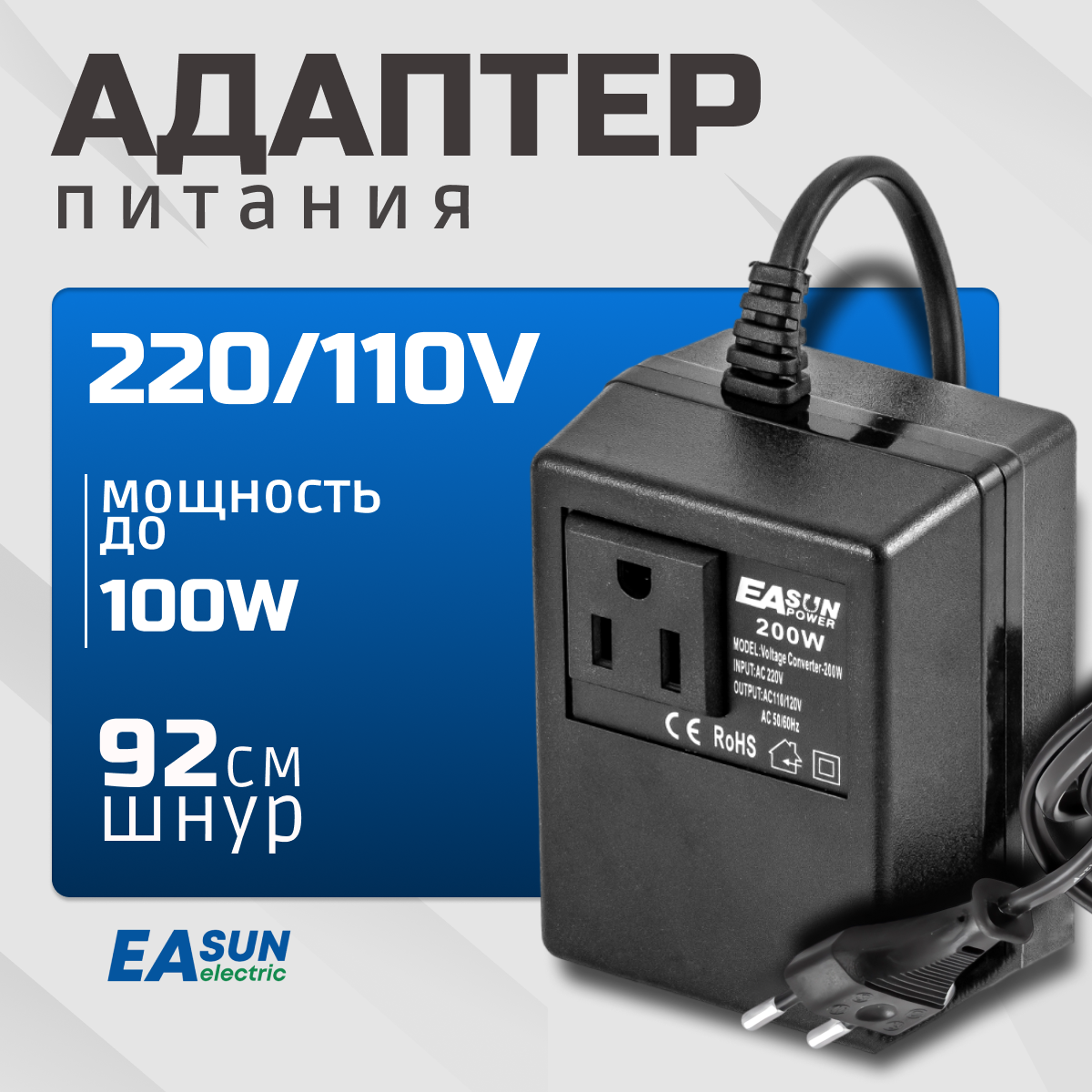 10 цен на Адаптер питания 220/110В. Подключение приборов, работающих от 110В к сети 220В. Мощность до 100Вт. Понижающий трансформатор. Инвертор напряжения.