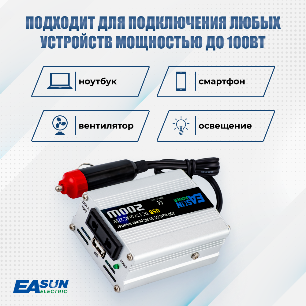 10 цен на Инвертор автомобильный 12 220В Power Inverter, 200 Вт. Подключение телефона, ноутбука, бытовых приборов. Преобразователь напряжения, трансформатор.