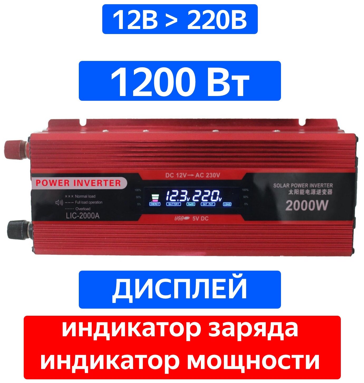 Инвертор напряжения 12 В в 220 В 1200 Вт Carmaer информация: