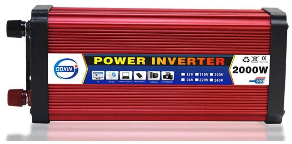 Инвертор автомобильный 12 220 2000 W, сеть 220В / Преобразователь напряжения 12 в 220 DOXIN DXR-2000 / 2000 Вт с Евророзеткой и USB, информация: