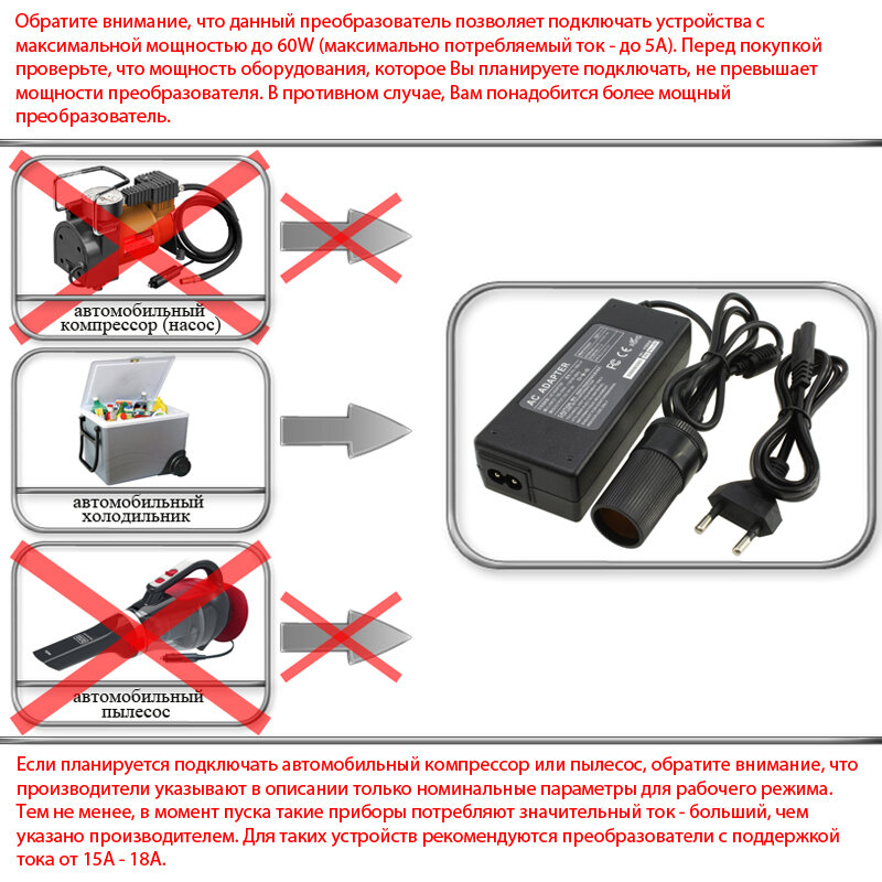Отзывы на Преобразователь питания 220V - 12V, 5A, 60W, со шнуром, для подключения автомобильного оборудования - регистратора, холодильника и др. к сети 220V