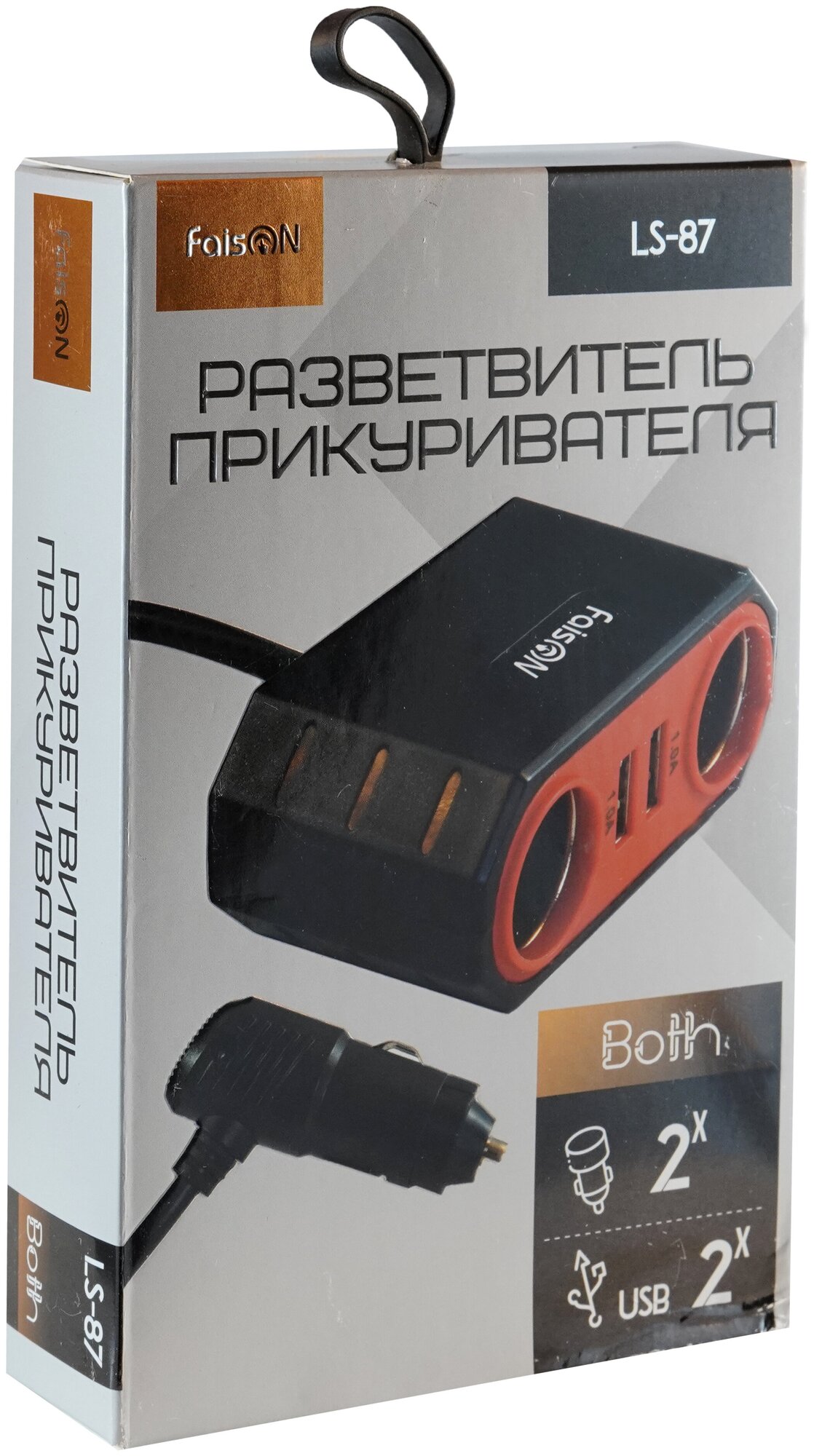Разветвитель прикуривателя FaisON, LS-87, Both, чёрный, красный информация: