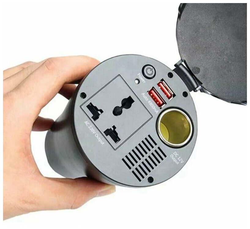 10 цен на Авторазветвитель прикуривателя в подстаканник с 2 USB + розетка 220v + гнездо прикуривателя, зарядка автомобильная 12V/ 10A/ 150W