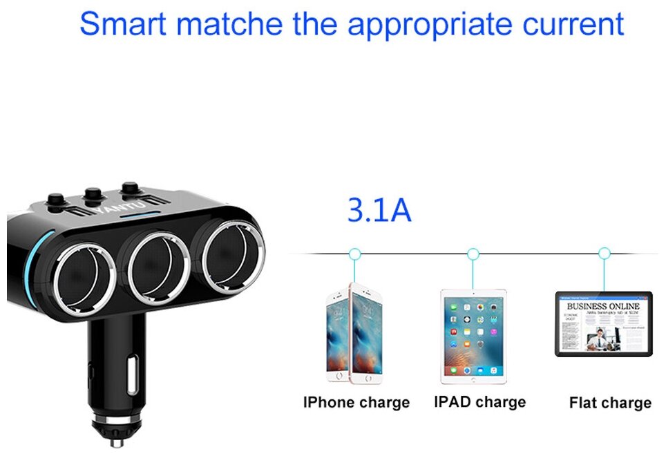 10 цен на Разветвитель прикуривателя на 3 розетки 2 USB 3.1A