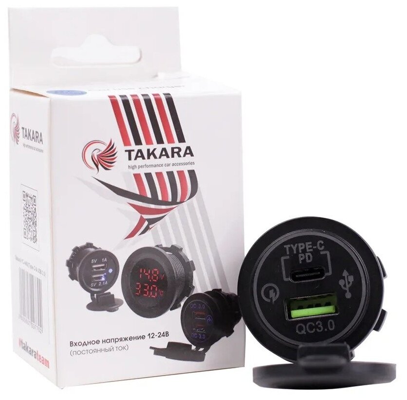 10 цен на USB-разъем встраиваемый для авто Takara YC-A93 (Type-C & USB 3.0) зеленая подсветка