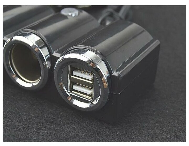 Отзывы на Разветвитель 1503 прикуривателя на 3 гнезда + 2 USB гнезда черный с хромированными вставками