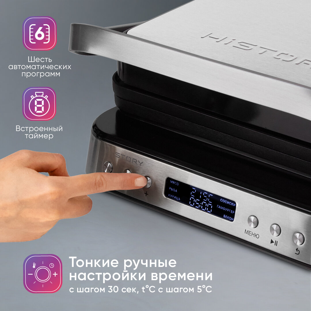 Программируемый электрогриль HiSTORY IG-D725 с регулировкой температуры и съемными панелями, 180 градусов информация: