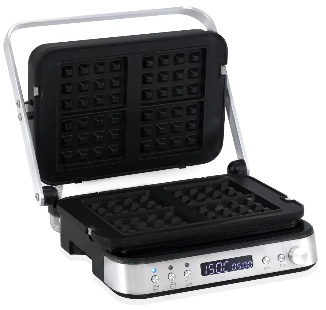 | Дополнительная информация | размер рабочей поверхности: 320x225 мм; дисплей: цифровой LED; раздельный нагрев рабочих поверхностей; материал рабочих поверхностей: алюминий; двухсторонняя панель: верхняя и нижняя; комбинированная панель: 2; каналы для стекания жира в поддон; съемные панели для вафель: 2; индикация включения; индикатор текущей температуры; индикатор времени приготовления; материал корпуса: нержавеющая сталь; длина сетевого шнура: 1 м; автоматическое переключение напряжения |