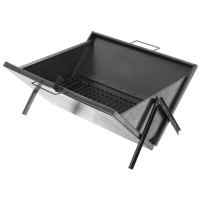 Мангал 800 мм. с полкой-решёткой и полкой под казан, сталь рифленая-усиленная 3 мм. разборный, с полкой под дрова