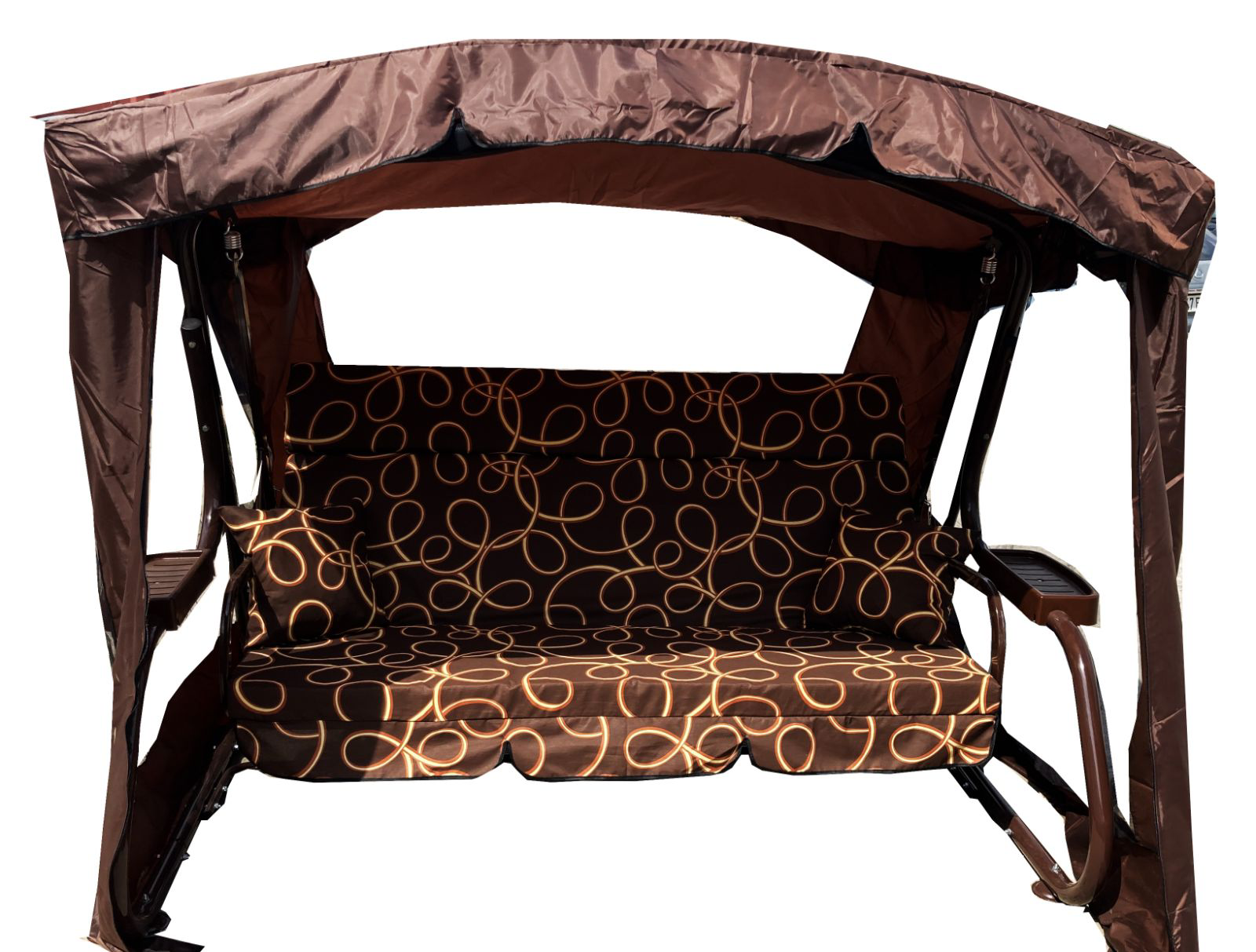 Качели садовые 3-х местные Мебель Сад (Кисилев) Ранго Каркас коричневый/Коричневый рис.золотая лента информация: