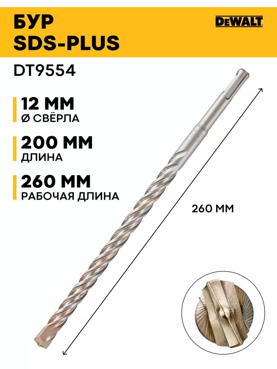 Бур Dewalt SDS-plus DT9554 [12х260х200мм, EXTREME2] информация: