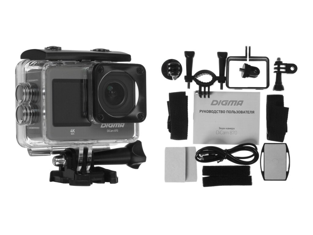 Экшн-камера с Wi-Fi Digma DiCam 870 4K (3840х2160), 60 кадров/сек, 16 Мп серый 8 472 ₽