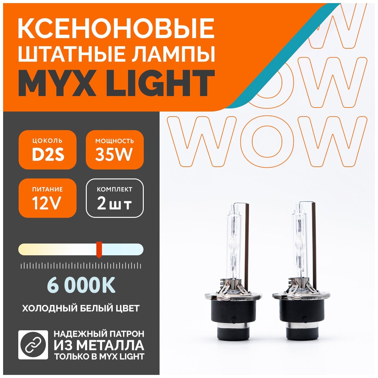 Ксеноновые лампы для автомобиля MYX Light, D2S, 12V, 35W, 6000K, металл комплект 2шт. информация: