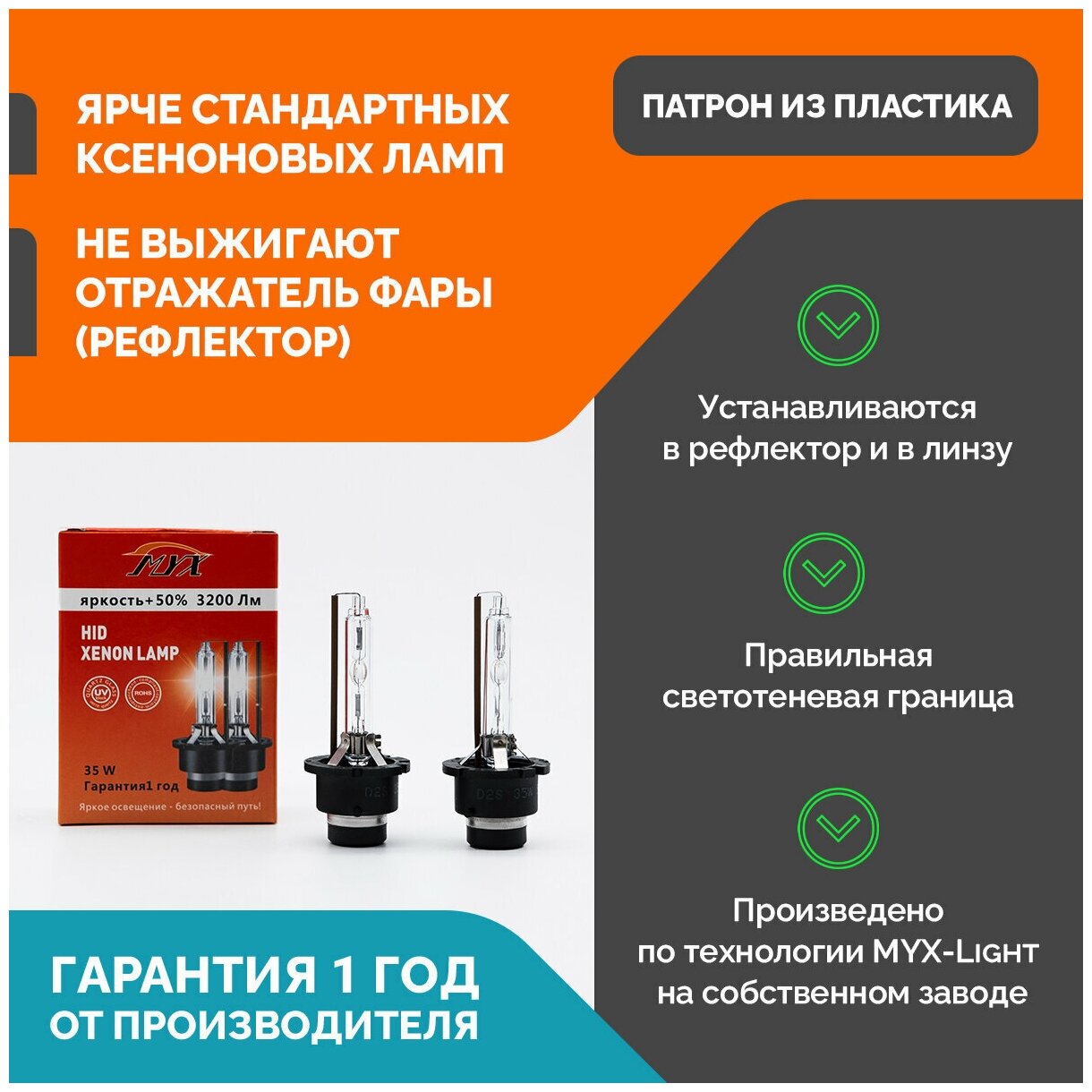 Ксеноновые лампы для автомобиля MYX Light D2S, 12V, 35W, 5000K, пластиковый цоколь, 2шт. информация: