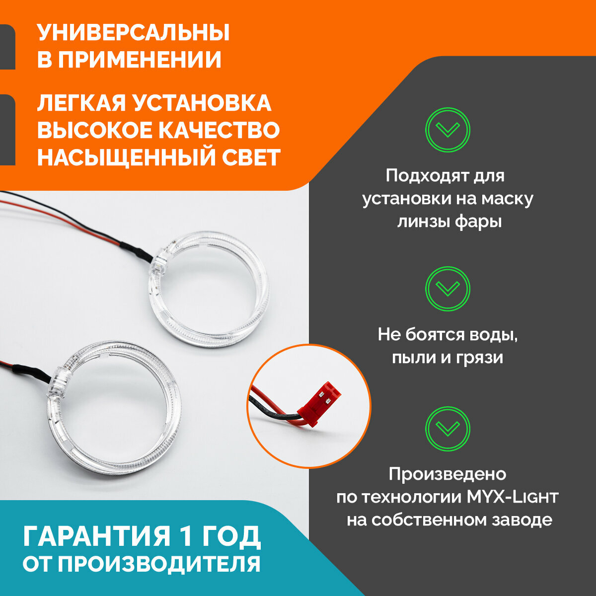10 цен на ДХО светодиодные ангельские глазки для бленды фары автомобиля MYX 2.5" (80мм), белый цвет, комплект 2 шт.