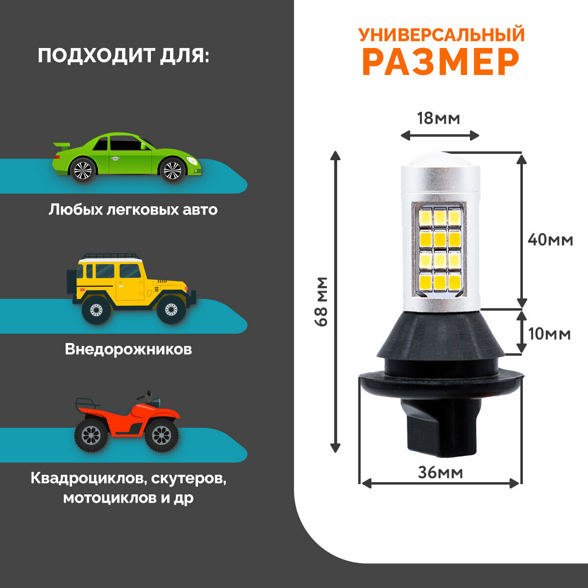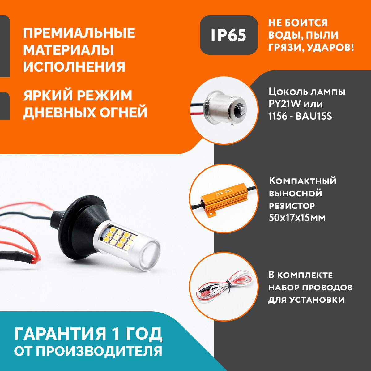 Светодиодные лампы MYX-Light габариты ДХО с поворотниками 2 в 1 P21 PY21W белый/желтый BAU15s комплект 2 шт информация: