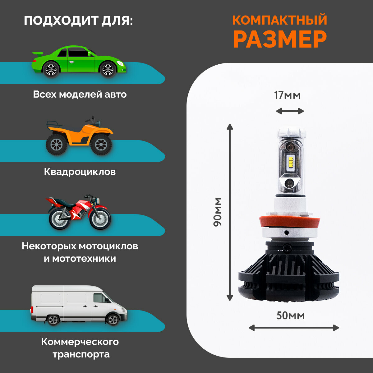 Светодиодные автомобильные лампы MYX Light X3 напряжение 12/24V, мощность 36W, LED чип ZES, температура света 6000K, цена за 2шт., цоколь H11 информация: