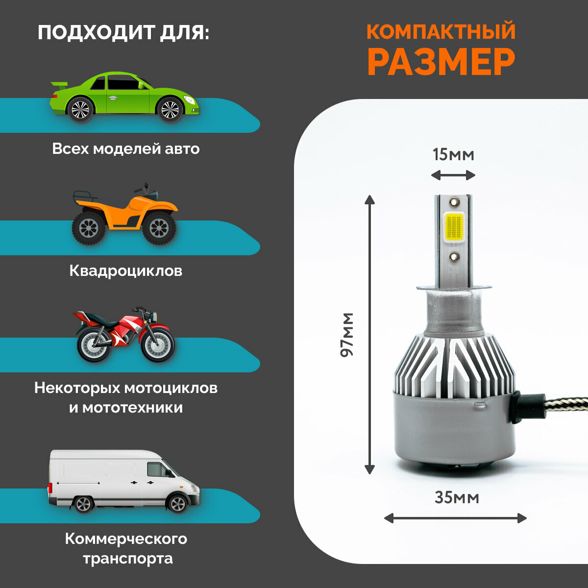Отзывы на Светодиодные автомобильные лампы MYX Light C9, напряжение 12V, мощность 36W, LED чип COB с вентилятором, температура света 6000K, цоколь H3, 2 шт.