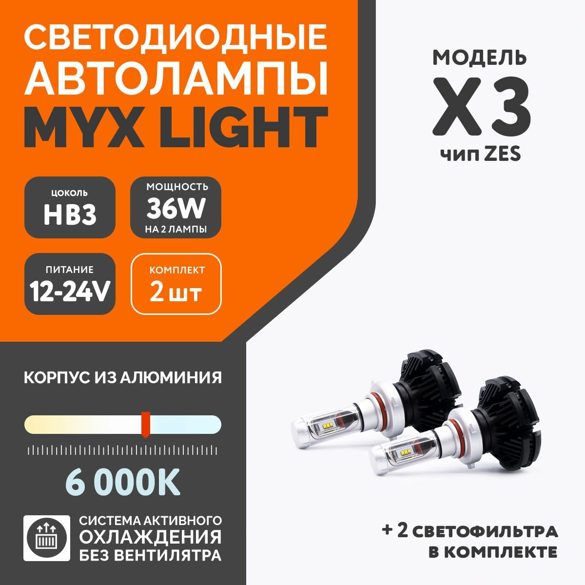 Отзывы на Светодиодные автомобильные лампы MYX Light X3 напряжение 12/24V, мощность 36W, LED чип ZES, температура света 6000K, цена за 2шт., цоколь HB3