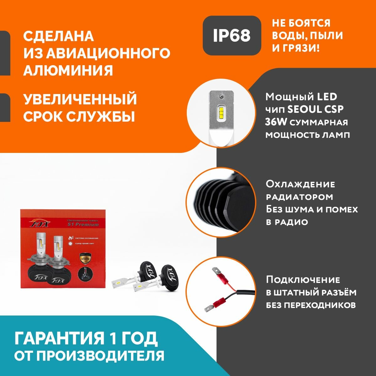 Светодиодные автомобильные лампы MYX Light S1 Premium напряжение 12V, мощность 40W, чип CSP SEOUL, температура света 6000K, цена за 2 шт., цоколь H27 информация: