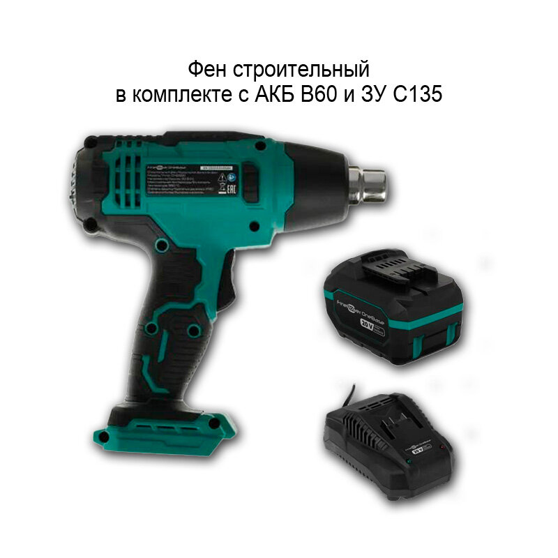 Фен строительный аккумуляторный с аккумулятором 6А٠ч и зарядным устройством 3,5А FinePower OneBase (800 об/мин, 550 градусов) информация: