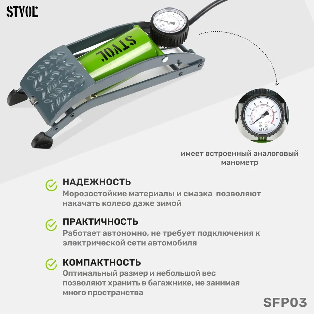 Отзывы на Насос автомобильный ножной STVOL SFP03, объём 380 см3, с сумкой