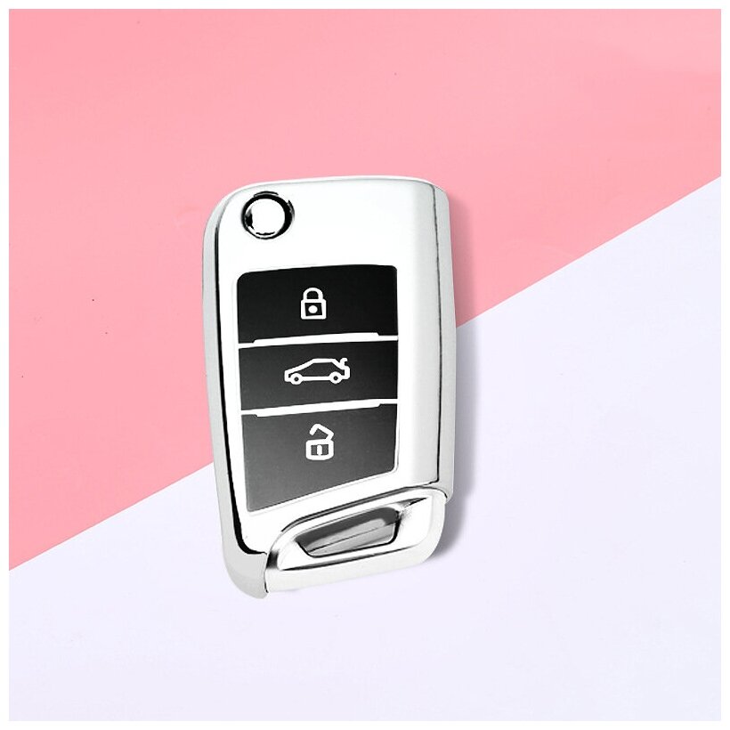 Отзывы на Силиконовый чехол на новый ключ зажигания Volkswagen хром цвета