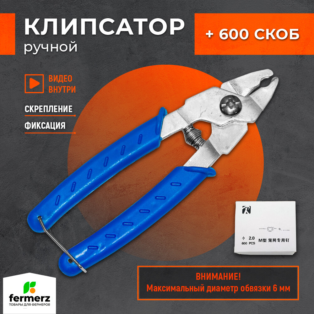 10 цен на Клипсатор ручной для скрепления сетки, забора, клеток, обвязки колбас, мешков. С упаковкой скоб 600шт.