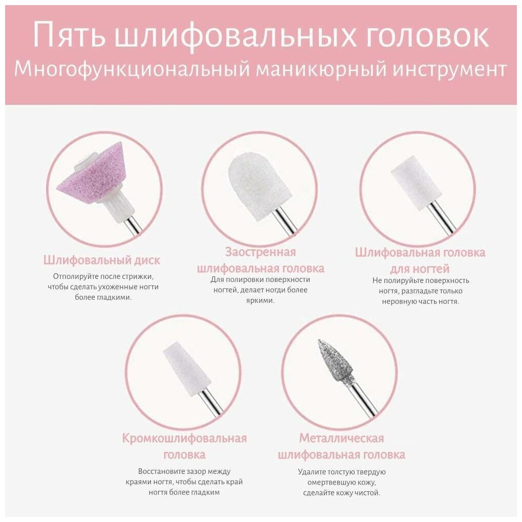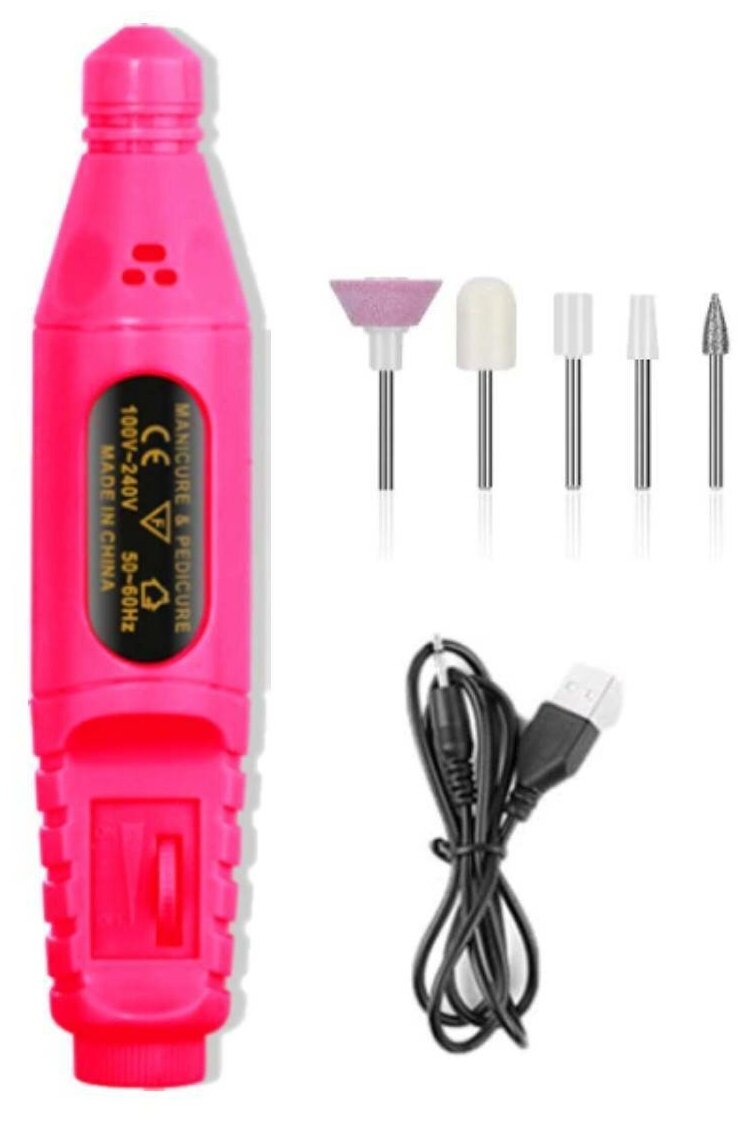 Портативный аппарат для маникюра и педикюра, фрезер, машинка-ручка, USB, малиновый информация: