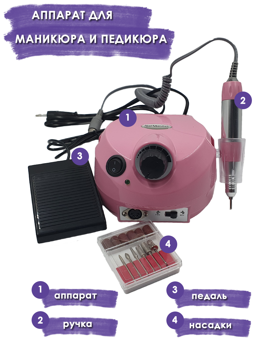 Фрезерный аппарат для маникюра и педикюра, Фрезер, машинка для маникюра 45000 об/мин 65 Вт, фрезер-аппарат для салонов красоты + купон/ розовый информация: