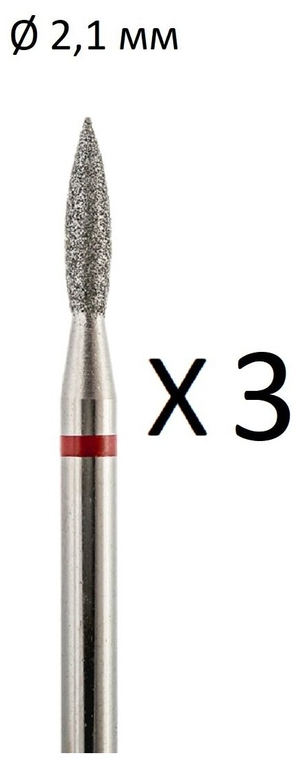 10 цен на Владмива Фреза для маникюра и педикюра алмазная 806 104 243 514 021 Тонкая красная пламя с острым кончиком (упаковка 3 шт) d-2.1