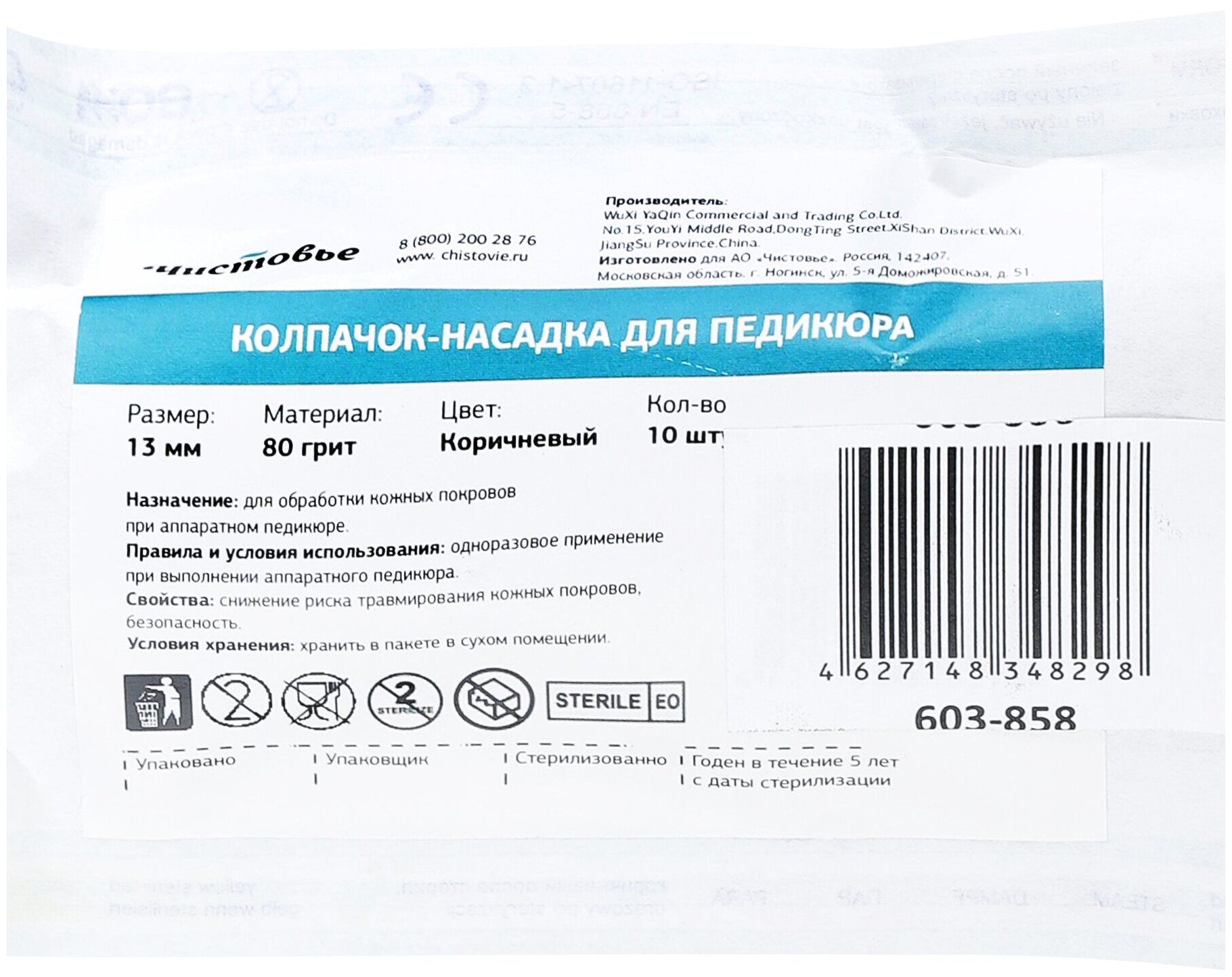 Отзывы на Чистовье, Колпачок-насадка для педикюра коричневый 13 мм 80 грит, 10 шт/упк Стерильно